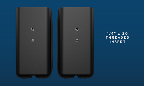 With a 1/4”-20 threaded insert on the back and the power cord conveniently located on the bottom, Flexus Surrounds can be wall mounted for maximum immersion or used on a flat surface.