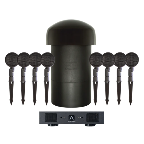 Sonance Garden Series includes a system of eight satellite speakers and one in-ground subwoofer, designed for easy installation and delivering even, balanced audio coverage. This expandable system allows for up to 16 speakers and two subwoofers powered by a single amplifier.