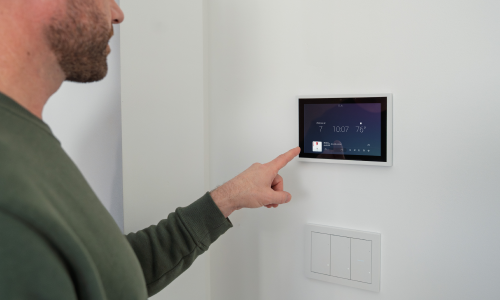 Introducing the new T5 In-Wall Touchscreen: sleek, smart, and easy to install. New features, such as a proximity sensor, dynamic screensaver, quad microphones, and Dark Mode, put control at users' fingertips. Available in 8” and 11” models.