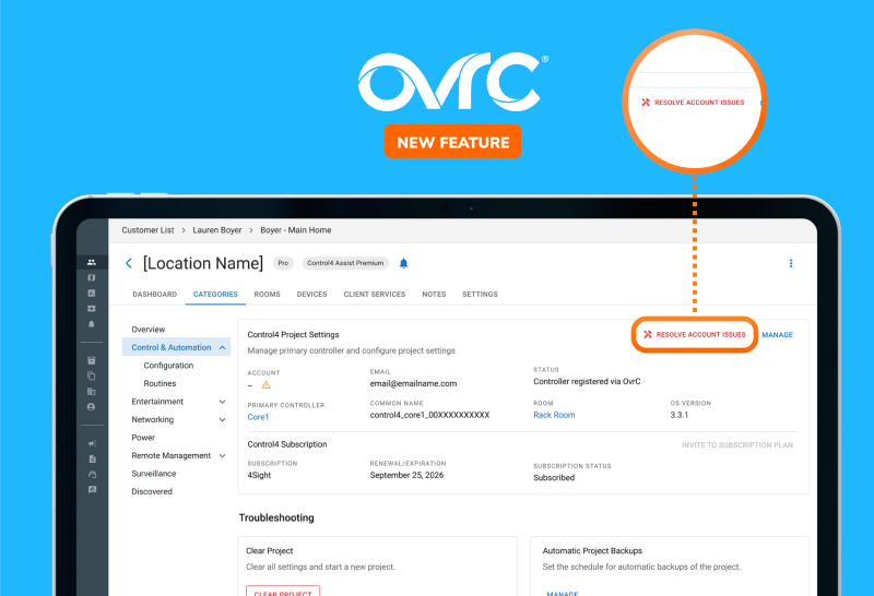 The new Self-Serve Mapping Tools in OvrC were created to give you greater clarity and control over how Control4 accounts and projects map to OvrC locations. You can now identify and fix mapping issues directly in OvrC, eliminating delays and reliance on Support. For more information, please read the blog post.